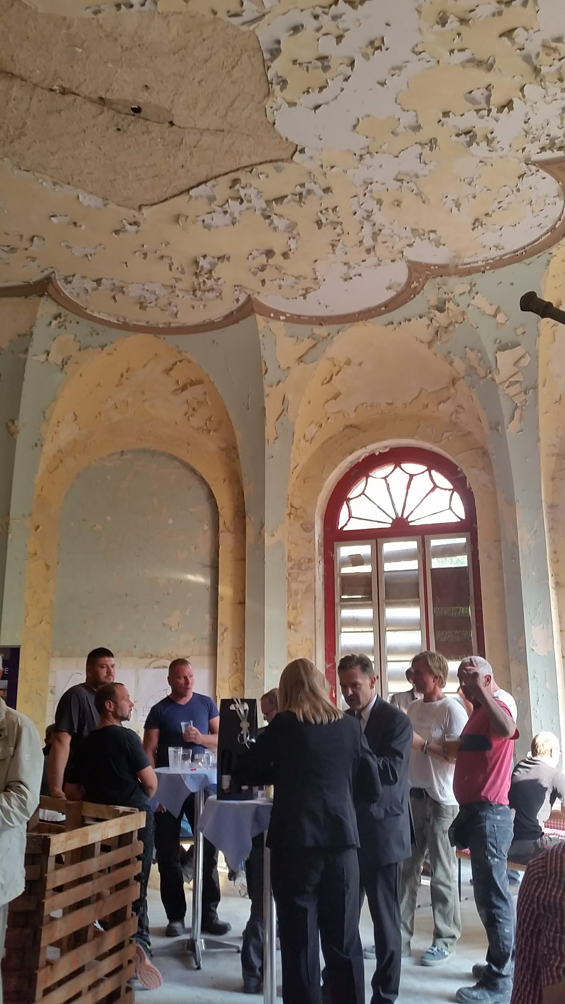 In einem Rundgang erläutert Schuh den Umfang der Arbeiten und die geplante Nutzung. Sein besonderer Stolz ist das Badehaus: “Mit der baulichen Sanierung des Kuppelsaals und den geschwungenen Seitenflügeln, in denen sich die Badkabinen befanden, wird durch die wieder auflebende Nutzung als Gesundheitszentrum der Hauptteil des Gebäudes seiner Historie wieder gerecht”, sagt er. Doch wie soll das Gebäude, das einst als Badeanstalt mit vielen einzelnen Kammern für Wannenbäder ausgestattert war, in Zukunft genutzt werden? Temba Schuh: “Als Mitinitiator und Ideengeber konnten wir Frau Constanze Rikirsch-Schöning als wesentliche Mieterin für das Interdisziplinare Therapiezentrum gewinnen”. Ebenfalls wesentlicher Baustein sei Frau Ute Hoffmann als weitere Mieterin und Kooperationspartner des Therapiezentrums. Rikirsch-Schöning ist Physiotherapeutin und Heilpraktikerin mit osteopathischer Ausbildung.”Entsprechend seiner Historie werden Behandlungen von Kindern mit und ohne Behinderungen einen hohen Stellenwert einnehmen”, so die Therapeutin.